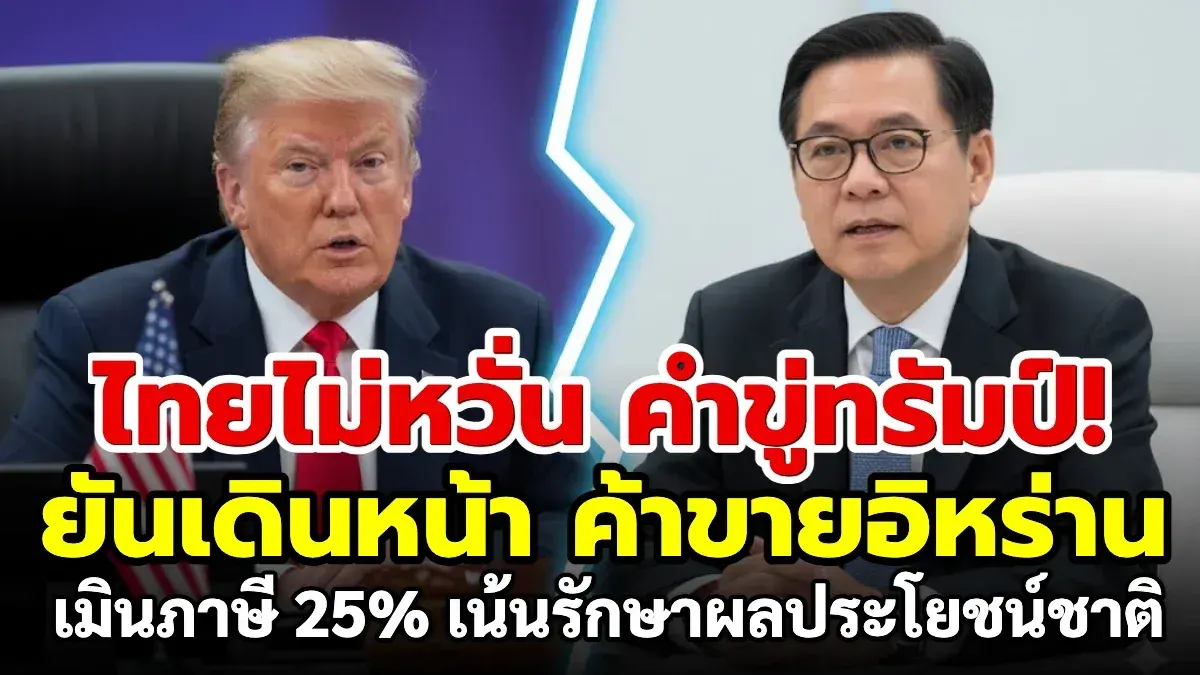 ไทยประกาศจุดยืนชัดเจน ไม่สนคำขู่ของโดนัลด์ทรัมป์ที่ประกาศสั่งเก็บภาษีสินค้าจากทุกประเทศสูงขึ้น 25% หากยังมีการค้าขายกับอิหร่าน