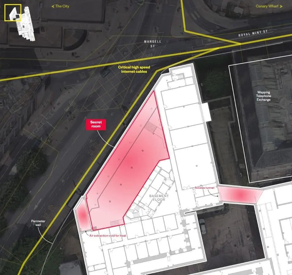 จากแผนผังที่ Telegraph ได้รับมาแบบ ไม่ปิดบังข้อมูล พบว่า ห้องลับดังกล่าวมีการติดตั้งระบบระบายอากาศร้อนหลายจุด ซึ่งผู้เชี่ยวชาญด้านความมั่นคงมองว่าอาจบ่งชี้ถึงการใช้งานอุปกรณ์คอมพิวเตอร์กำลังสูง
