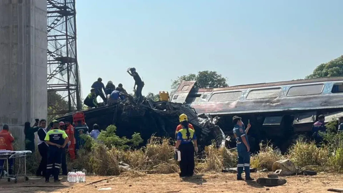 คนงานก่อสร้างเล่านาทีระทึก!.... เครนรถไฟความเร็วสูงร่วงทับขบวนรถด่วนพิเศษ 21 ยอดดับพุ่ง-เจ็บระนาว