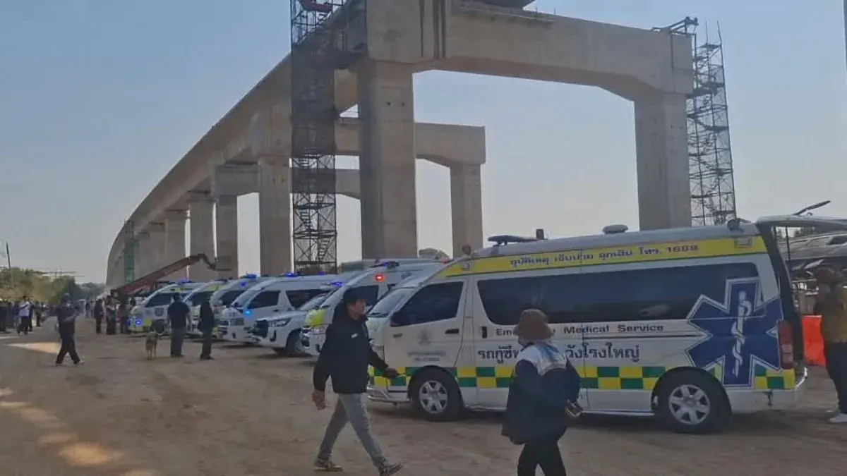 คนงานก่อสร้างเล่านาทีระทึก!.... เครนรถไฟความเร็วสูงร่วงทับขบวนรถด่วนพิเศษ 21 ยอดดับพุ่ง-เจ็บระนาว
