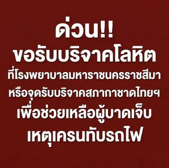 #บริจาคโลหิต #เครนถล่มทับรถไฟ #รพมหาราชนครราชสีมา #สภากาชาดไทย #ช่วยเหลือผู้ประสบภัย #สีคิ้ว #นครราชสีมา