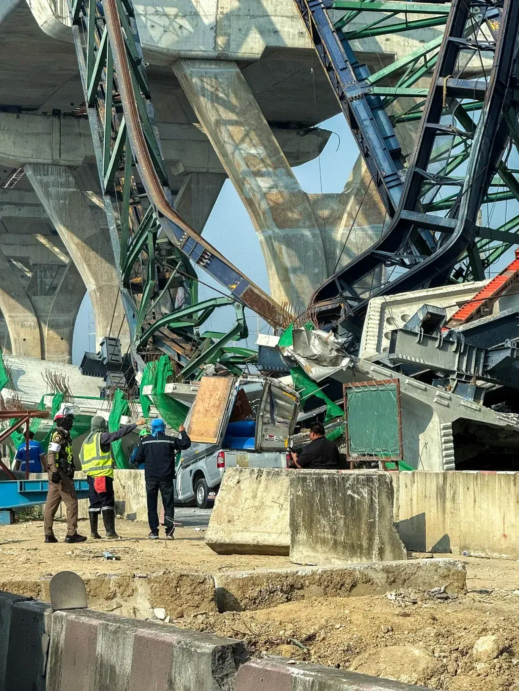 พันตำรวจเอก "สิทธิพร กาศี" ผู้กำกับการสถานีตำรวจในพื้นที่ กล่าวว่า "เหตุการณ์ล่าสุดเกิดขึ้นในจังหวัดสมุทรสาคร ใกล้กรุงเทพมหานคร โดยเครนที่ใช้ในการก่อสร้างทางหลวงยกระดับ ได้ล้มลงบนถนนด้านล่าง"