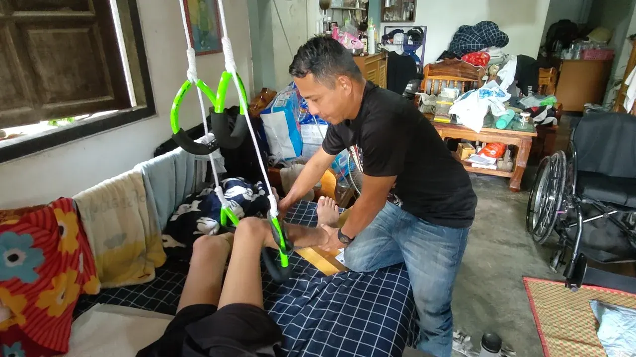อตัวเองได้ เพราะกระสุนปืนตัดเส้นประสาท ก่อนกลับมารักษาตัวที่บ้านพัก ใน อ.พระพรหม โดยตนต้องลาออกจากงานมาคอยดูแล กายภาพบำบัดลูกชายอย่างใกล้ชิด หวังว่าให้ร่างกายของลูกชายจะกลับมาเป็นปกติ สามารถช่วยเหลือตัวเองได้บ้าง