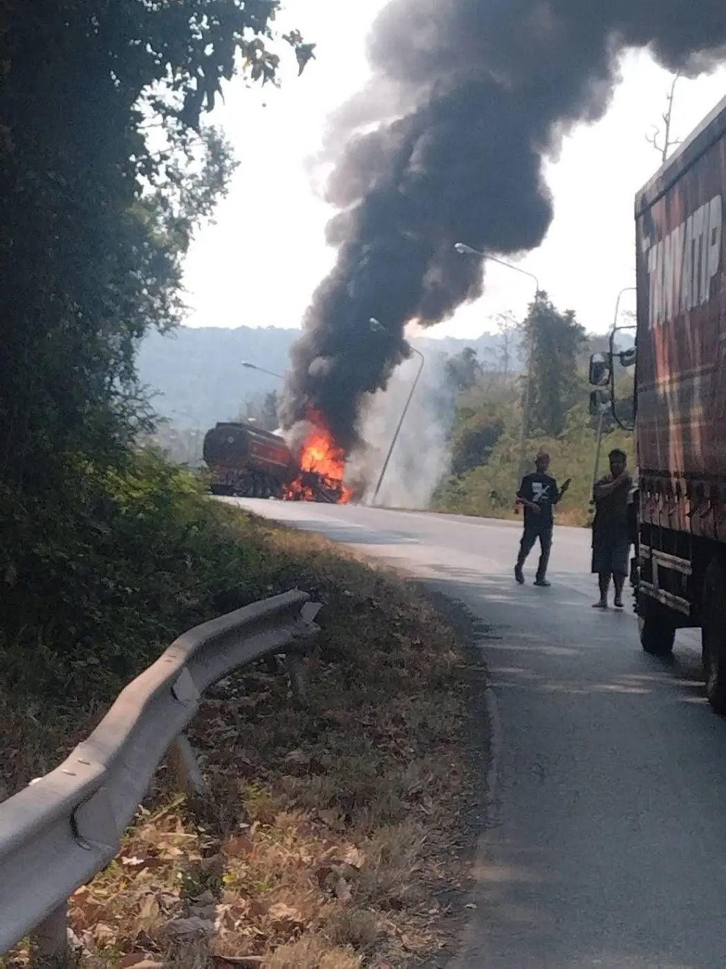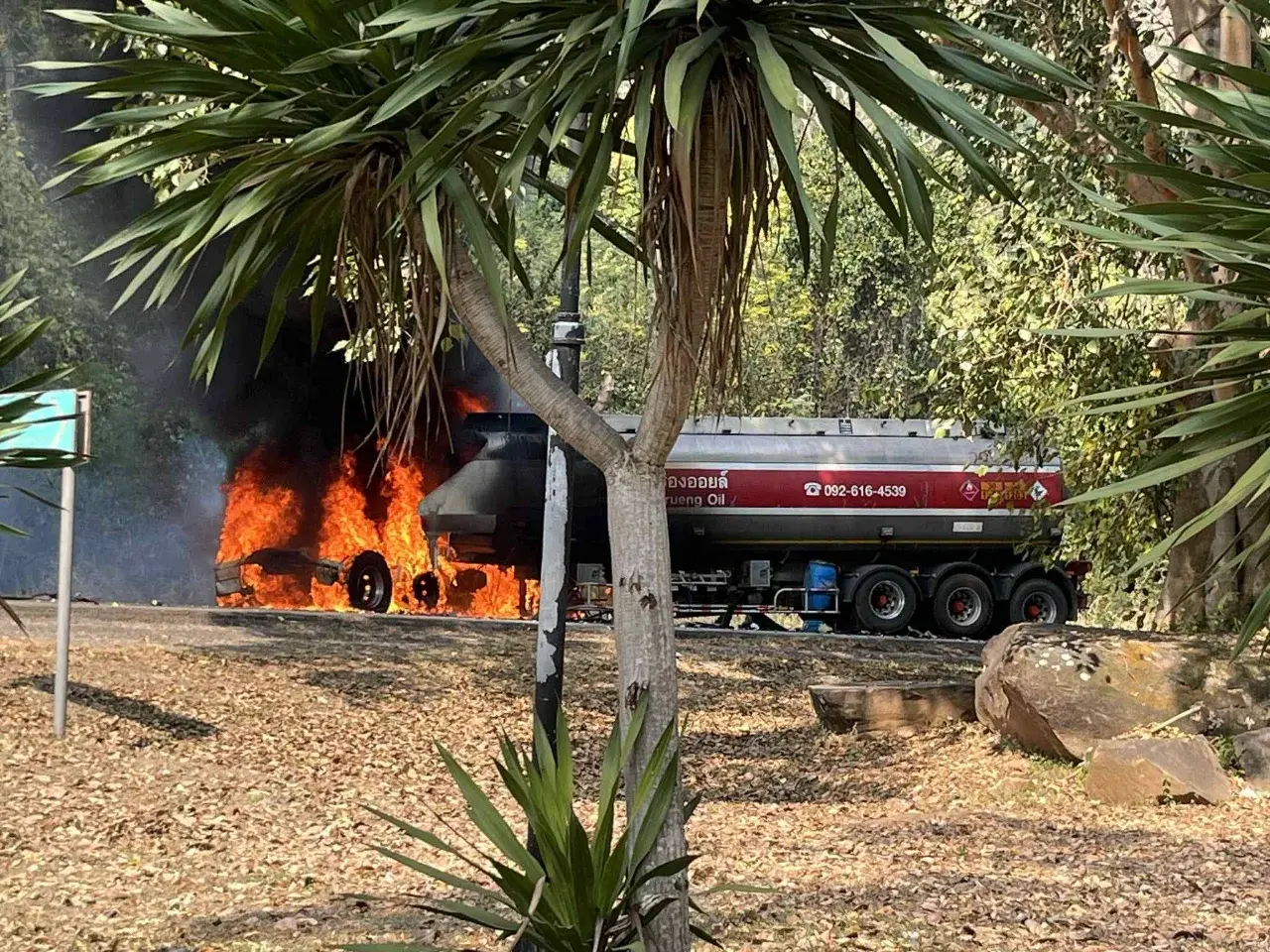 อย่างไรก็ตามนขับรถบรรทุกอยู่ในอาการปลอดภัย เนื่องจากสามารถหนีออกจากตัวรถได้ทันก่อนที่ไฟจะลุกไหม้รุนแรง