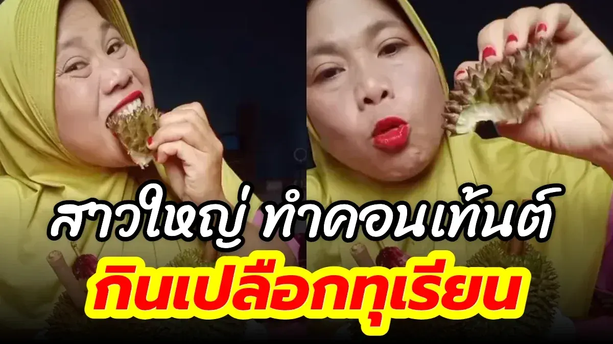 หญิงคนหนึ่งทำเอาผู้ชมตกตะลึงด้วยการกินเปลือกทุเรียน
