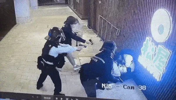 ไม่นานหลังจากนั้น เจ้าหน้าที่ตำรวจ 3 นาย ในชุดปราบจลาจล พร้อมโล่ ปรากฏตัวในที่เกิดเหตุ ชายผู้ก่อเหตุพยายามใช้หญิงตัวประกันเป็นโล่กำบัง โดยก้มตัวหลบอยู่ด้านหลัง ขณะหญิงรายดังกล่าวนอนอยู่กับพื้น