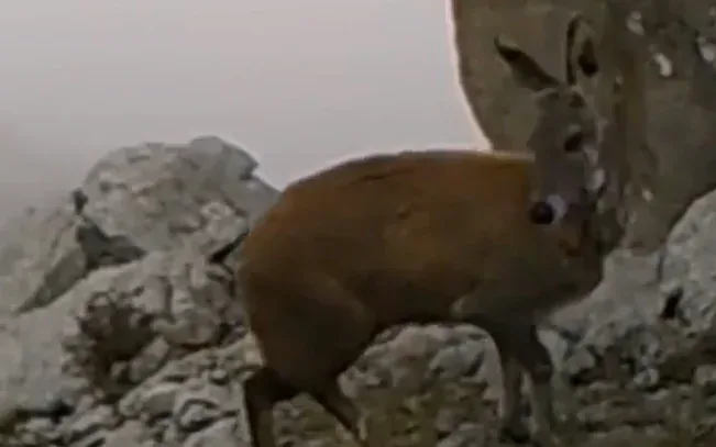 คลิปวิดีโอที่ได้จากกล้องตรวจจับแสดงให้เห็นว่า "มีกวางชะมดโตเต็มวัยตัวหนึ่ง ที่มีสภาพร่างกายแข็งแรง ขนสีน้ำตาลอมเทาที่มีลวดลายกระจาย ช่วยให้มันกลมกลืนไปกับพื้นหินและพืชพรรณที่ปกคลุมไปด้วยหมอกในเขตภูเขาสูง สัตว์ตัวนี้เดินอย่างช้าๆบนไหล่เขา หูตั้งตรงและหมุนไปมาเพื่อรับฟังเสียงรอบด้าน ในขณะที่ดวงตาสีดำสนิทจ้องมองอย่างระมัดระวัง จมูกขยับเบาๆ ราวกับกำลังดมกลิ่นสภาพแวดล้อม เมื่อมั่นใจว่าไม่มีภัยคุกคาม มันจึงค่อยๆเคลื่อนตัวลึกเข้าไปในผืนป่า ทิ้งไว้เพียงความเงียบสงบ อันเป็นเอกลักษณ์ของภูเขาสูง ที่ยังคงความบริสุทธิ์..."