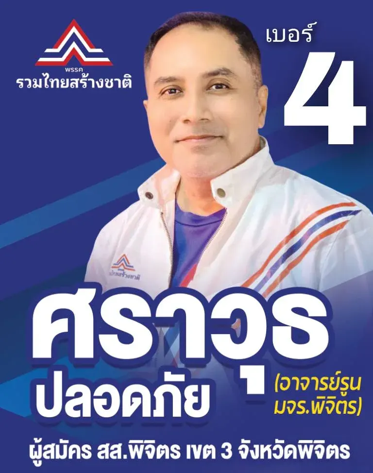 อันประกอบด้วยอำเภอบางมูลนาก อำเภอโพทะเล อำเภอโพธิ์ประทับช้าง และอำเภอบึงนาราง ที่หลายพรรคการเมืองจ้องตาจับจองอยากเป็นเจ้าของพื้นที่ โดยส่วนตัวนายสราวุธปลอดภัย จบการศึกษาสูงสุดในระดับปริญญาโท และเคยเป็นสมาชิกสภาท้องถิ่น อีกทั้งยังเป็นอาจารย์ มจร. พิจิตร จึงไม่ใช่เรื่องยากที่จะมีลูกศิษย์ลูกหา และเครือข่ายพันธมิตรร่วมให้การสนับสนุน คนดีรุ่นใหม่ไฟแรงคนนี้ ยังไงแล้ว วันที่ 8 กุมภาพันธ์นี้ขอเชิญชวนพี่น้องประชาชน เขตเลือกตั้งที่ 3 ของจังหวัดพิจิตร ไปใช้สิทธิ์เลือกตั้ง เลือกคนดี มีความรู้มีประสบการณ์ เลือกศราวุธ ปลอดภัย เบอร์ 4 และพรรครวมไทยสร้างชาติ เบอร์ 6 เพื่อมาเป็นตัวแทนพี่น้องประชาชนมาเป็นปากเป็นเสียงให้พี่น้องประชาชน กันด้วยนะครับ