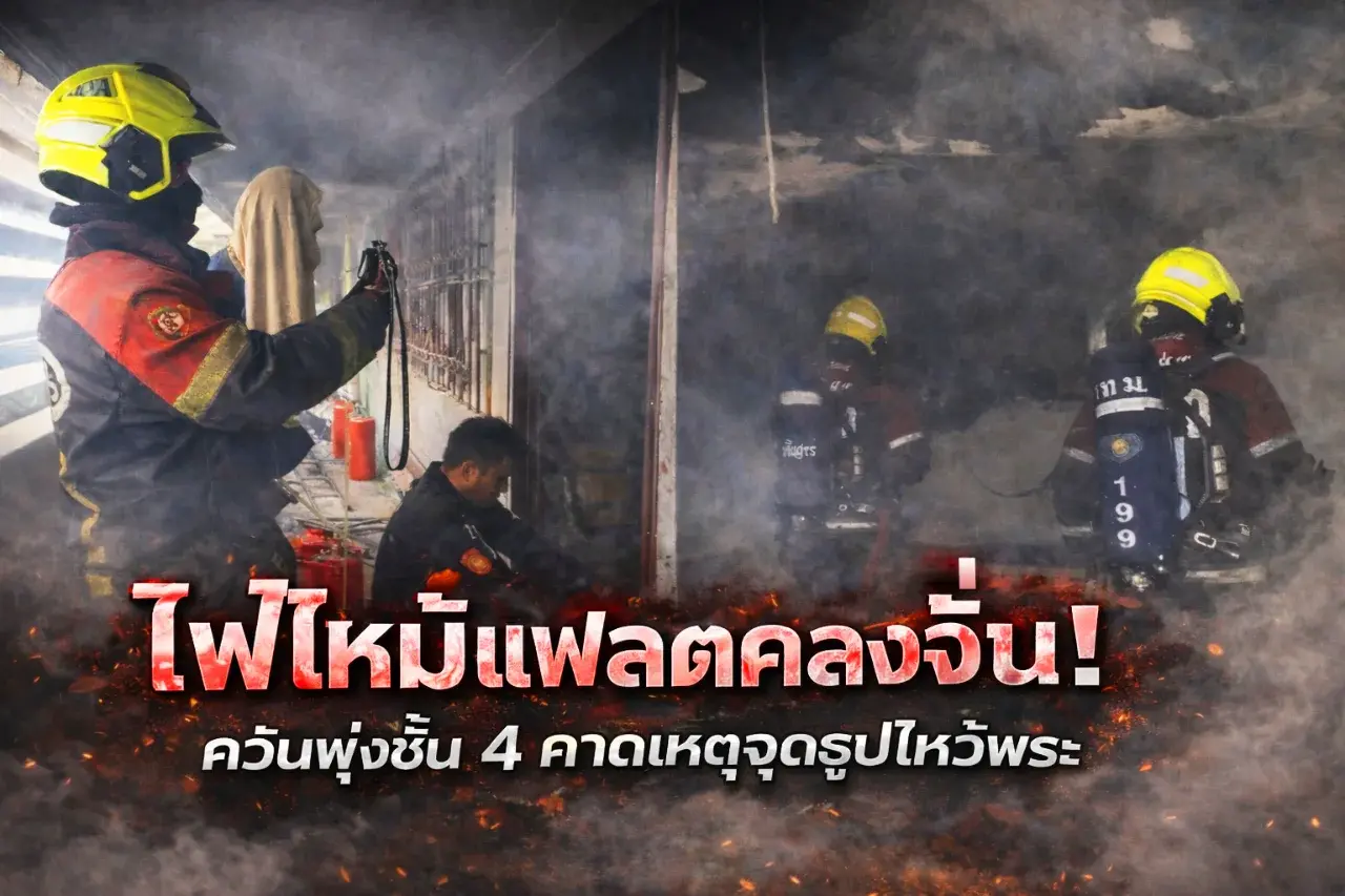 ระทึกรับอรุณ! ไฟไหม้แฟลตเคหะคลองจั่น ควันพุ่งชั้น 4 คาดเหตุจากจุดธูปเทียนไหว้พระ