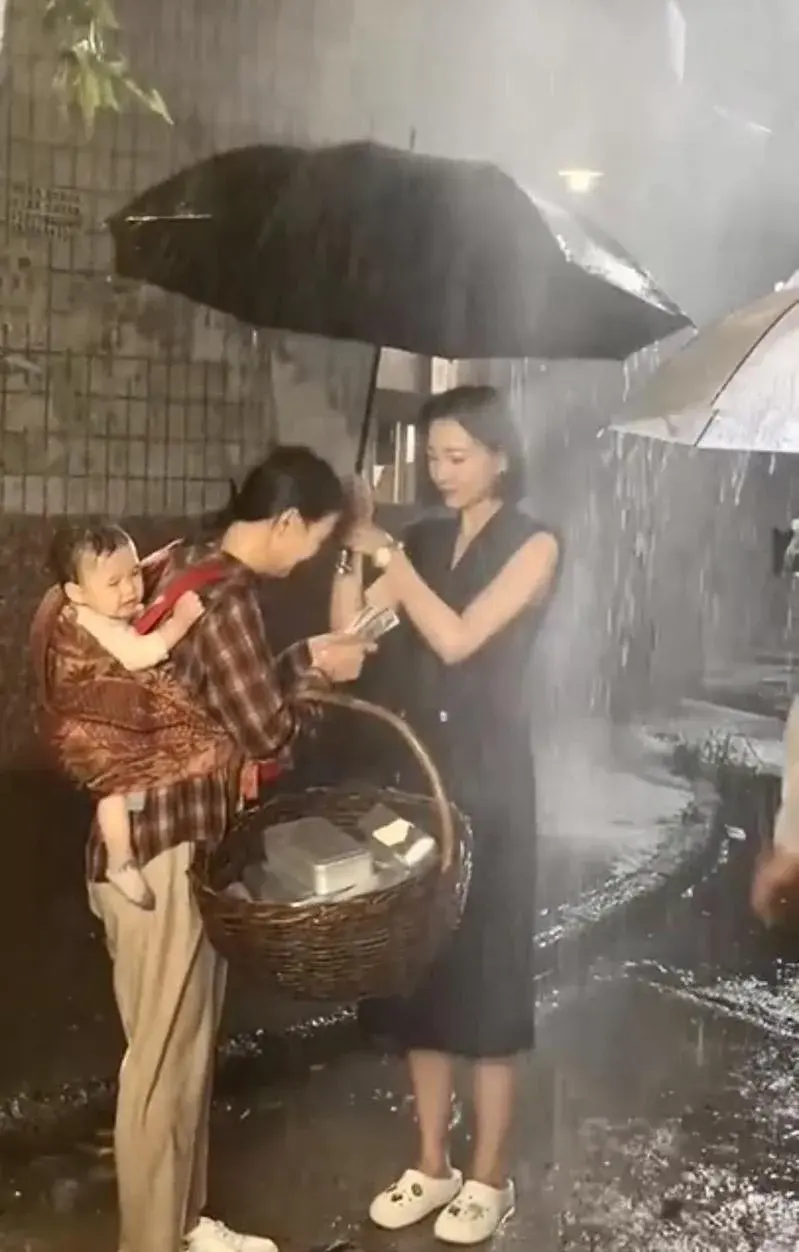 ตามคำบอกเล่าของ "สิง อวิ๋น" การถ่ายทำเกิดขึ้นในเวลากลางคืน อากาศหนาวเย็น และ ฝนที่ฉีดจากรถน้ำตกลงมาอย่างหนัก แม้จะกางร่มก็สามารถบังได้เพียงศีรษะเท่านั้น นักแสดงหญิงอีกคนที่เล่นฉากเดียวกัน ต้องอุ้มทารกไว้ด้านหลัง เพื่อถ่ายฉากที่ตัวละครเห็นแม่ลูกตากฝน ก่อนจะเข้าไปกางร่มและมอบเงินให้