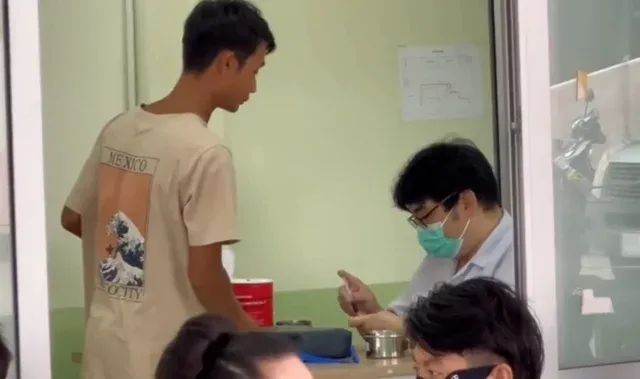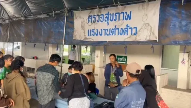 ตัดมาที่ภาพโรงพยาบาลตราด ผู้ประกอบการไทยและนายหน้าจัดหางาน ได้นำแรงงานชาวเมียนมา ชาวมอญ และชาวลาวจำนวนนับร้อยคนมาทำการตรวจสุขภาพ ตรวจเลือด เพื่อทำบัตรแรงงานใหม่ หรือต่อบัตรแรงงานที่หมดอายุ เพื่อให้เป็นแรงงานถูกต้องตามกฎหมายแรงงาน สามารถรับจ้างทำงานในจังหวัดตราดได้อย่างถูกกฏหมาย