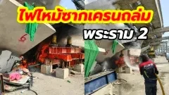ไฟไหม้ซากเครนถล่มพระราม 2 หน้าโรงแรมปารีส สมุทรสาคร