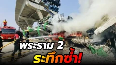 ระทึกซ้ำ! เพลิงไหม้จุดเครนถล่มพระราม 2 ขณะรื้อถอนซาก เจ้าหน้าที่เร่งคุมสถานการณ์