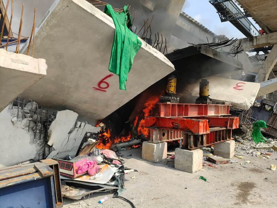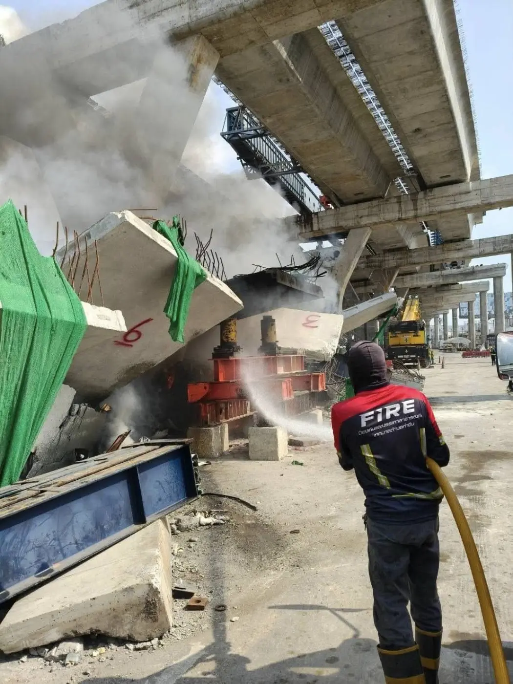 ในรายงานระบุว่ามีไฟลุกไหม้ขึ้นหลายจุดใกล้กับซากโครงเหล็กเดิม ซึ่งส่งผลให้เกิดควันดำพวยพุ่งขึ้นเหนือพื้นที่จุดเกิดเหตุและสร้างความแตกตื่นให้กับผู้ที่สัญจรผ่านบริเวณดังกล่าว ซึ่งขณะนี้เจ้าหน้าที่กำลังระดมฉีดน้ำและอุปกรณ์เพื่อควบคุมสถานการณ์ให้ปลอดภัย