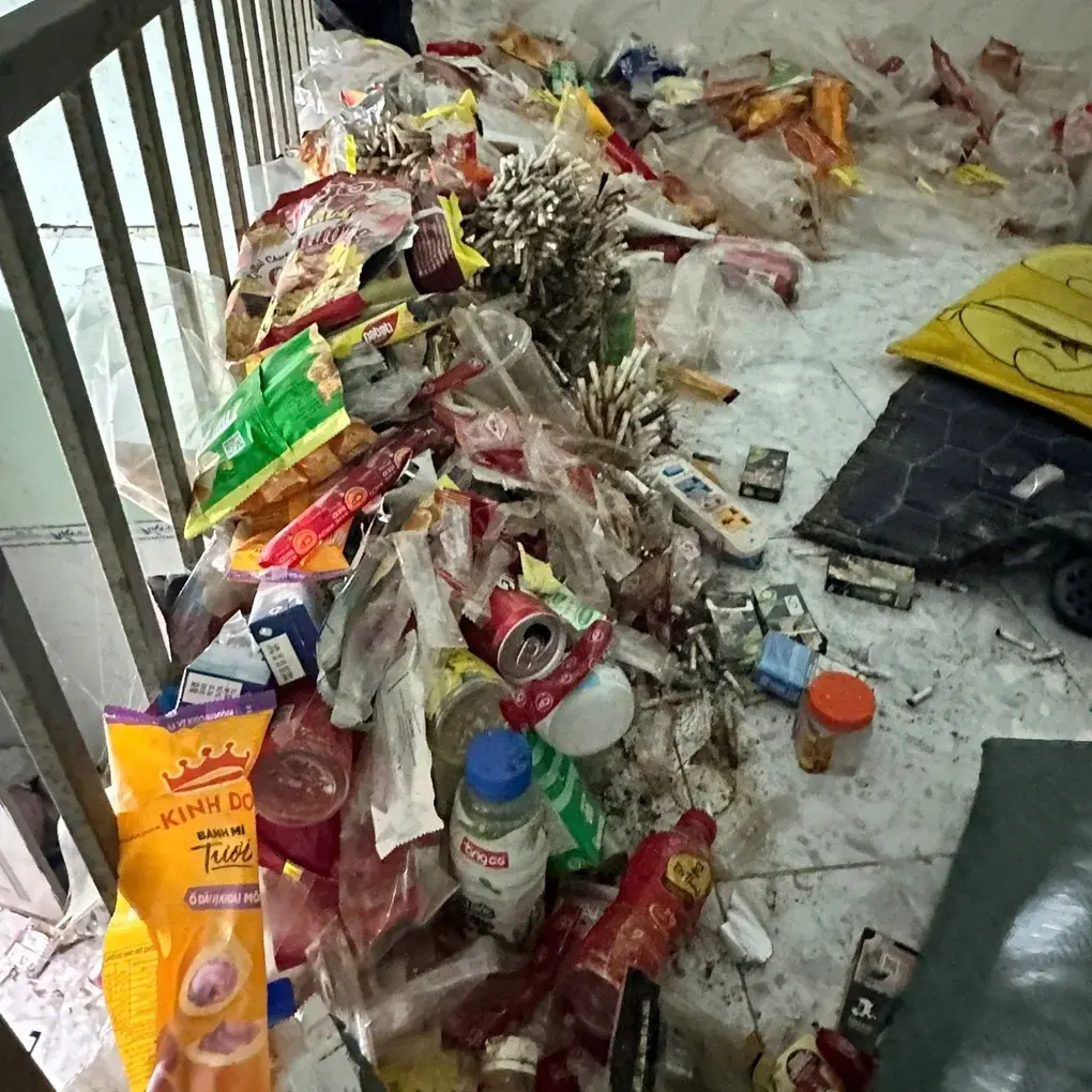 ต้องใช้คน 3-4 คน ช่วยกันทำความสะอาดตั้งแต่ช่วงเที่ยงจนถึงค่ำจึงแล้วเสร็จ ได้ขยะใส่ถุงกระสอบจำนวนหลายสิบถุง แม้แต่ในห้องน้ำและห้องสุขาก็เต็มไปด้วยขยะ