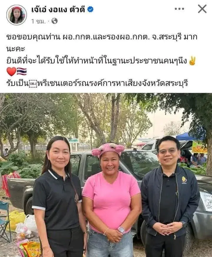เจ๊เอ๋ อินฟลูฯ เจอปัญหาหลังห้ามติดป้ายหาเสียงในชุมชน ทำให้เกิดดราม่าในโลกออนไลน์ พร้อมภาพสนิทกับ กกต.สระบุรี