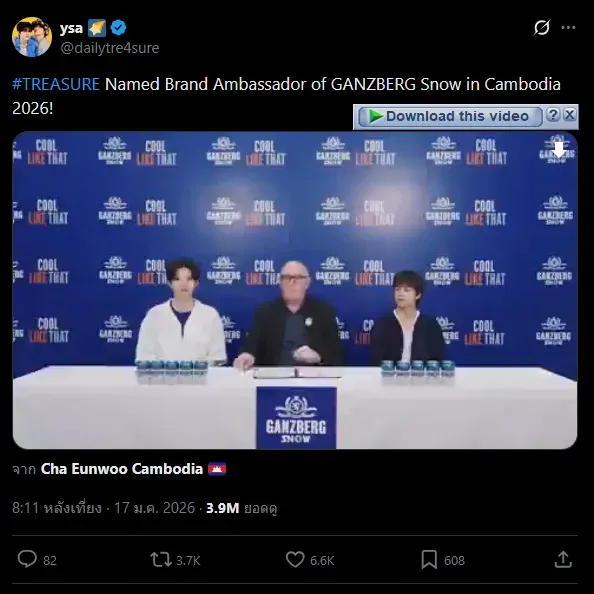 โดยทางเพจระบุว่า "สปอนเซอร์เจ้าใหม่ นอกจากจะเข้ามาเป็นแบรนด์แอมบาสเดอร์ ตลอดปี 2026 ยังมีกิจกรรม กับทางแบรนด์แอมบาสเดอร์ ซึ่งศิลปิน ต้องไปเล่นและเข้าร่วมกิจกรรมในกัมพูชา" และ "YG คิดอะไรอยู่ทั้งๆที่ Treasure มี ฐานแฟนคลับเป็นคนไทยเยอะมาก"