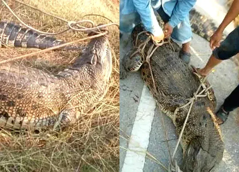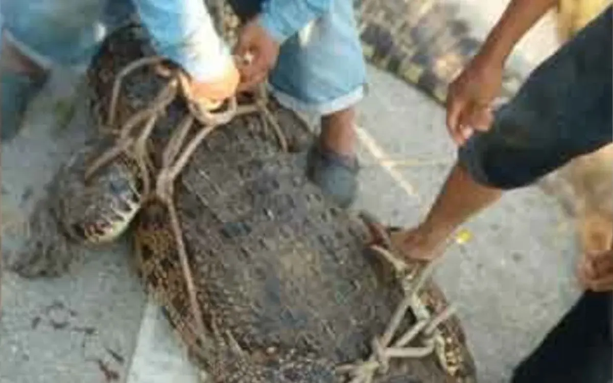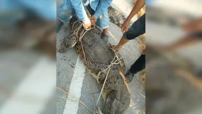 ชาวบ้านล้อมจับจระเข้ยักษ์ได้สำเร็จ ทำให้เกิดภาพเหตุการณ์ที่น่าตื่นเต้น จนแทบหยุดหายใจ