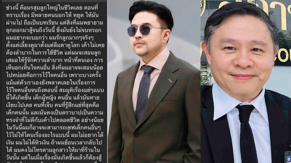 ท่ามกลางมรสุมข่าวฉาวที่สั่นสะเทือนวงการกฎหมาย พ่อของเยาวชนสาววัย 18 ปี ได้ออกมาเคลื่อนไหวด้วยการโพสต์ข้อความผ่านโซเชียลส่วนตัว ซึ่งเป็นการถ่ายทอดความรู้สึกจากหัวใจของคนเป็นพ่อที่ต้องเห็นลูกสาวเผชิญกับเหตุการณ์เลวร้าย โดยยืนยันเจตนารมณ์ชัดเจนว่าการต่อสู้ครั้งนี้ไม่ใช่เพื่อเงินทอง แต่เพื่อศักดิ์ศรีและปกป้องเยาวชนคนอื่นไม่ให้ต้องตกเป็นเหยื่อรายต่อไป
