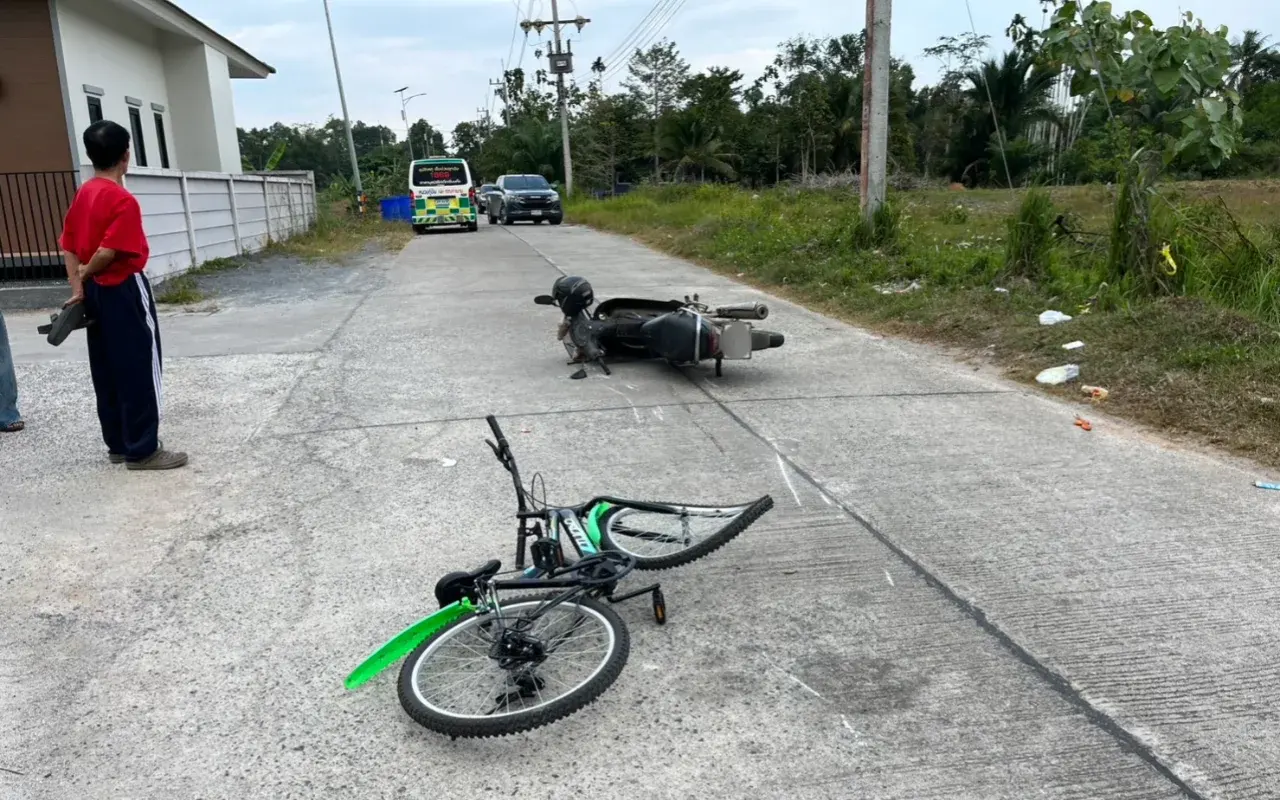 กล้องชัด!จักรยานเด็กชายปั่นออกซอย ถูก จยย.ทางตรงชนเจ็บ 3