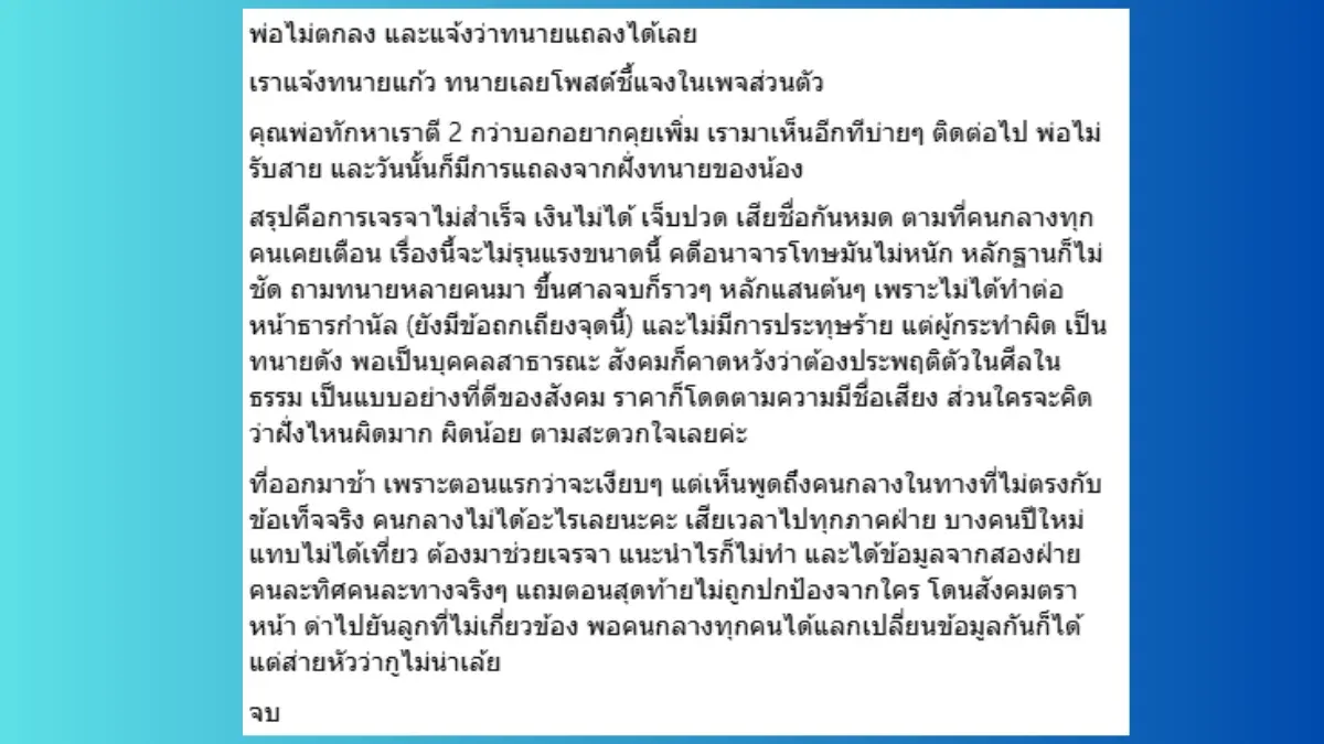 เปิดแชตเจรจาที่ล้มเหลว: เมื่อ "คนกลาง" กลายเป็นจำเลยสังคม