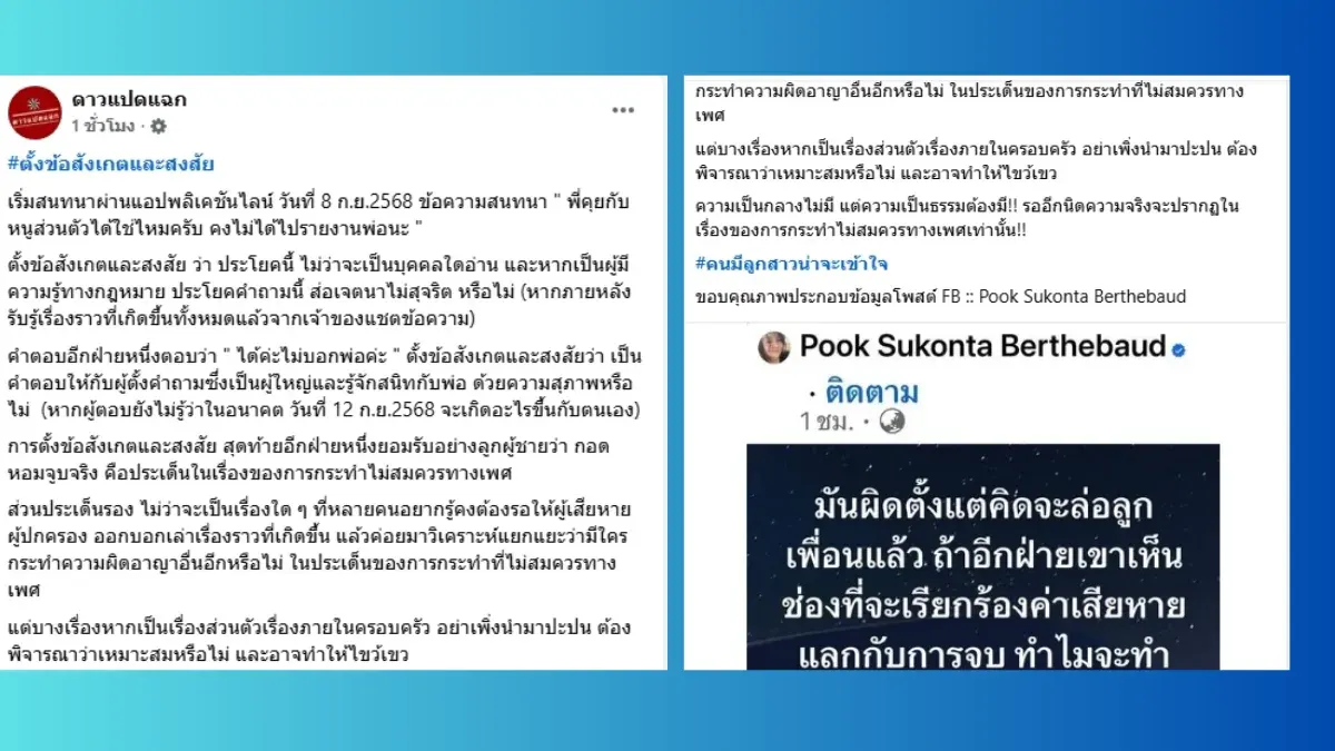 อย่างไรก็ตามวิเคราะห์เจาะลึกปมแชตลับที่เป็นจุดเริ่มต้นของความขัดแย้งระหว่างทนายดังและน้องวัย 18 ปี ข้อมูลจากเพจ "ดาวแปดแฉก" ได้ตั้งข้อสังเกตถึงพฤติการณ์ก่อนและหลังเกิดเหตุที่อาจสะท้อนถึงเจตนาแฝง ซึ่งเป็นหัวใจสำคัญในการพิจารณาความเป็นธรรมให้กับผู้เสียหายในคดีการกระทำที่ไม่สมควรทางเพศ