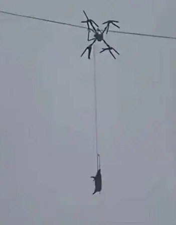 ชาวบ้านจีนใช้โดรนขนหมูทั้งตัวไปติดอยู่บนสายไฟฟ้าแรงสูง ทำไฟดับทั้งหมู่บ้านกว่า 10 ชั่วโมง