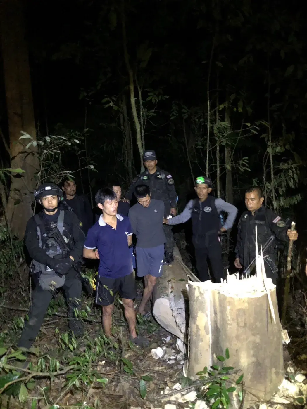 ป่าไม้ชุดพญาเสือบุกจับ 3 ชาวเวียดนามลักลอบตัดไม้กฤษณา อุทยานแห่งชาติน้ำตกโยงเมืองคอน