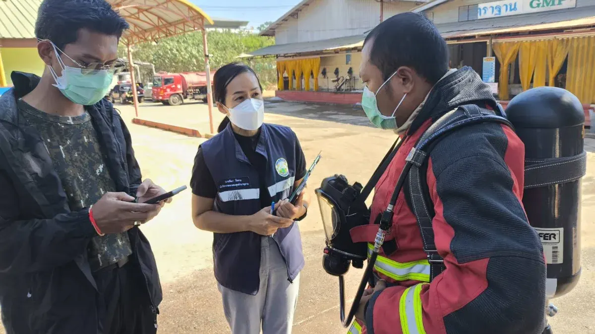 คณะทำงานได้ลงพื้นที่ตรวจสอบสถานประกอบกิจการต้นเพลิง เพื่อติดตามความคืบหน้าในการแก้ไขปัญหาหลังจากเจ้าหน้าที่ได้ระงับเหตุรั่วไหลไปเมื่อเวลา 03.00 น. ที่ผ่านมา