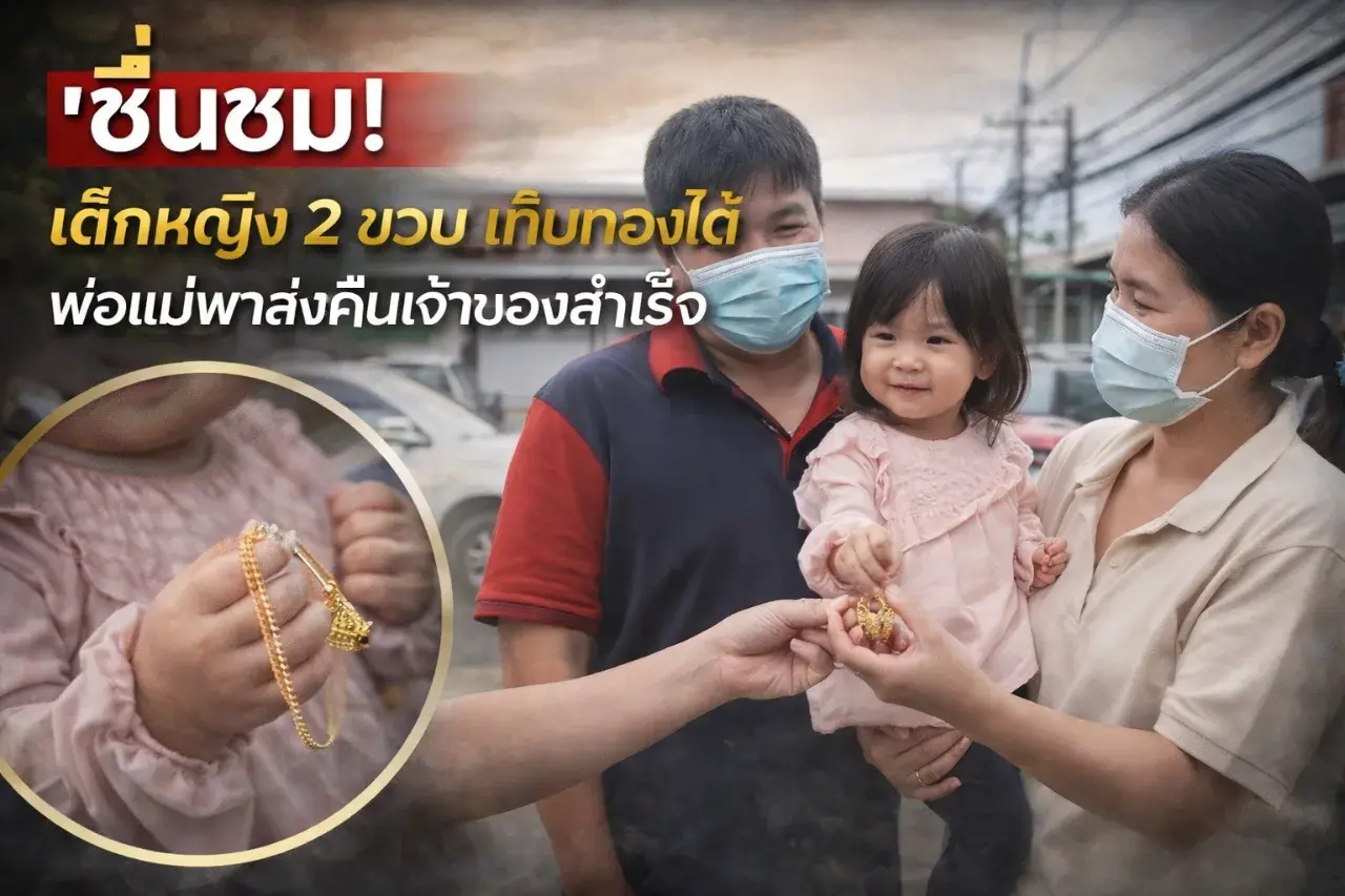 เด็กหญิงวัย 2 ขวบเก็บสร้อยทองได้ ครอบครัวร่วมตามหาและส่งคืนเจ้าของ