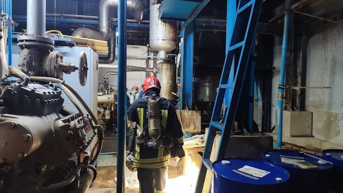จากการตรวจสอบ ณ จุดเกิดเหตุ เจ้าหน้าที่พบว่ามี "สารแอมโมเนีย" รั่วไหลออกมาจากเครื่องผลิตน้ำแข็ง ซึ่งใช้สารดังกล่าวเป็นตัวทำความเย็น เจ้าหน้าที่จึงได้ดำเนินการปิดวาล์วควบคุมระบบทั้งหมดเพื่อหยุดการรั่วไหลในทันที และควบคุมพื้นที่จนเข้าสู่สภาวะปกติ