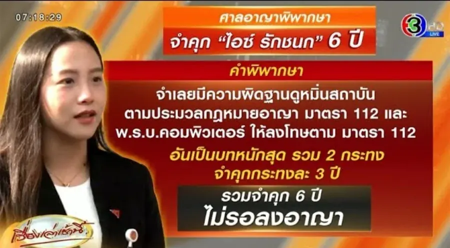 ไอซ์ รักชนก ยังคงมีคดีความค้างคาที่สร้างแรงกระเพื่อมอยู่เสมอ ในคดี ม.112 ศาลอาญาเคยพิพากษาจำคุก 6 ปี (จากกรณีทวีตและรีทวีต) ปัจจุบันอยู่ในขั้นตอนอุทธรณ์ ซึ่งล่าสุด เมื่อธันวาคม 2568 ที่ผ่านมา ศาลมีคำสั่ง ไม่ถอนประกันตัว หลังมีผู้ร้องเรียนว่าเธอทำผิดเงื่อนไข ทำให้เธอยังคงปฏิบัติหน้าที่ สส. ต่อไปได้