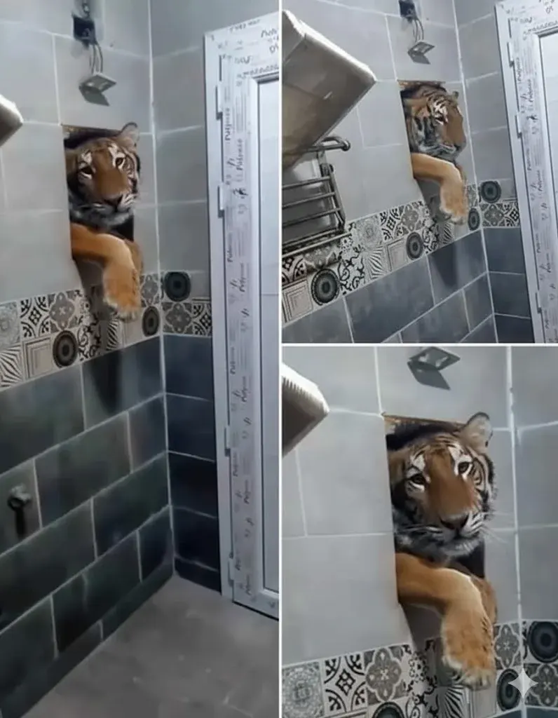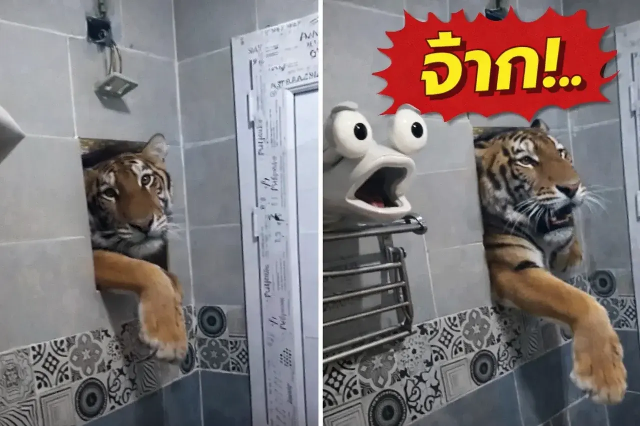 ใช่… เสือโคร่งตัวเป็น ๆ ไม่ใช่แมว ไม่ใช่สุนัข ไม่ใช่ภาพหลอนจากสบู่เข้าตา แต่เป็นเสือโคร่งจริง ๆ ที่กำลังชะโงกหน้ามองเข้ามาเหมือนจะถามว่า “อาบน้ำเสร็จหรือยัง”