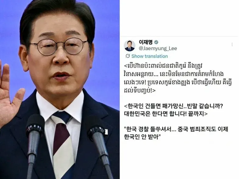 ปธน.เกาหลีใต้เดือด! ขู่จะเอาให้พินาศกับชาติที่ทำร้ายคนเกาหลี..งานนี้โพสต์เป็นภาษาเขมรด้วย บอกเลยไม่ได้ขู่เล่นๆ แต่งานนี้เอาจริงอย่างถึงที่สุด โดยได้โพสต์ข้อความลงในโซเชียลเมื่อวันที่ 30 ม.ค.69 ระบุว่า เกาหลีใต้มีความมุ่งมั่นที่จะสู้กับอาชญากรรมฉ้อโกงข้ามชาติที่มุ่งเป้าไปที่พลเมืองของตนเอง การเตือนครั้งนี้ไม่ได้พูดเปล่าๆ เพราะทางการเกาหลีใต้กำลังเร่งสืบสวนคดีฉ้อโกงออนไลน์ที่เชื่อมโยงกับกัมพูชาอยู่