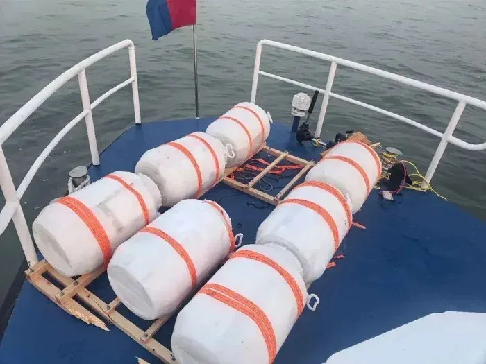 ทันทีที่ได้รับแจ้ง เจ้าหน้าที่ได้จัดส่งเรือกู้ภัยเข้าไปยังพื้นที่เกิดเหตุ ในขณะนั้นเป็นช่วงใกล้ค่ำ หมอกเริ่มปกคลุมผิวน้ำ ทำให้ทัศนวิสัยลดลงอย่างมาก และ สร้างความยากลำบากในการค้นหา หลังจากที่เจ้าหนาที่วนค้นหารอบบริเวณเกาะมากกว่า 2 รอบ เจ้าหน้าที่จึงสามารถระบุตำแหน่งของ 2 พ่อลูกได้ สิ่งที่ปรากฏต่อหน้าคือ "เรือ" ที่เปราะบางอย่างยิ่ง มีพื้นที่เพียงประมาณ 2 ตารางเมตร ประกอบขึ้นจากถังพลาสติก 6 ใบ และ แผ่นไม้ไม่กี่แผ่น บนพื้นที่แคบๆนั้น ชายคนนี้และเด็กชายสวมเสื้อชูชีพ นั่งชิดกันอย่างหวาดเสียว โคลงเคลงไปตามแรงคลื่น