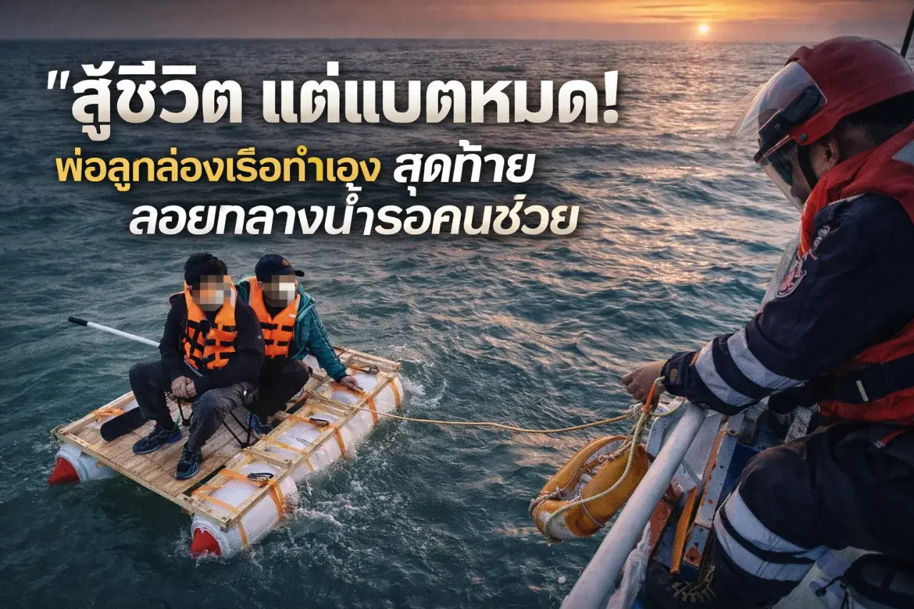 ระทึกกลางทะเลสาบ "พ่อ-ลูกติดกลางน้ำ หลังเรือทำเองแบตหมด"