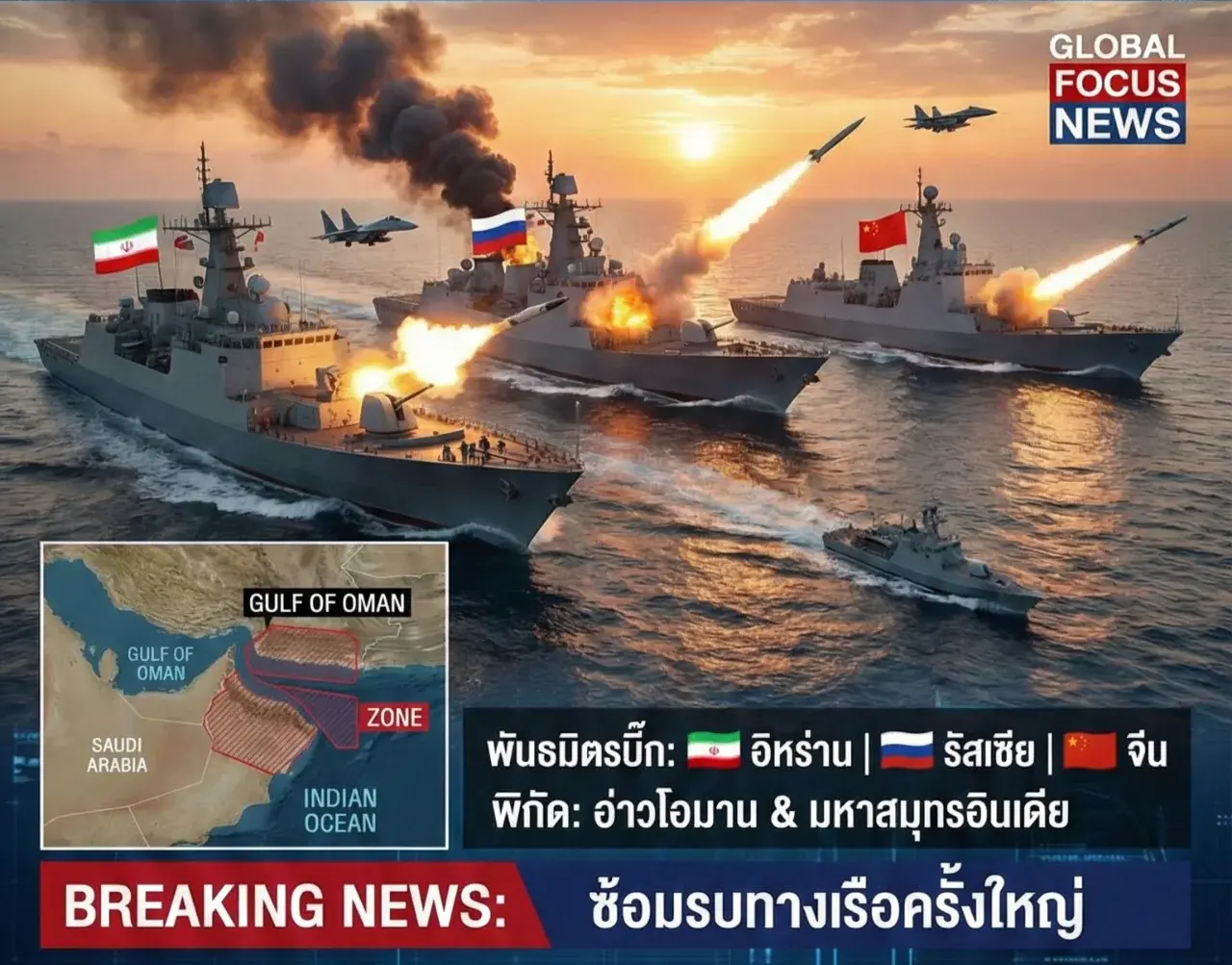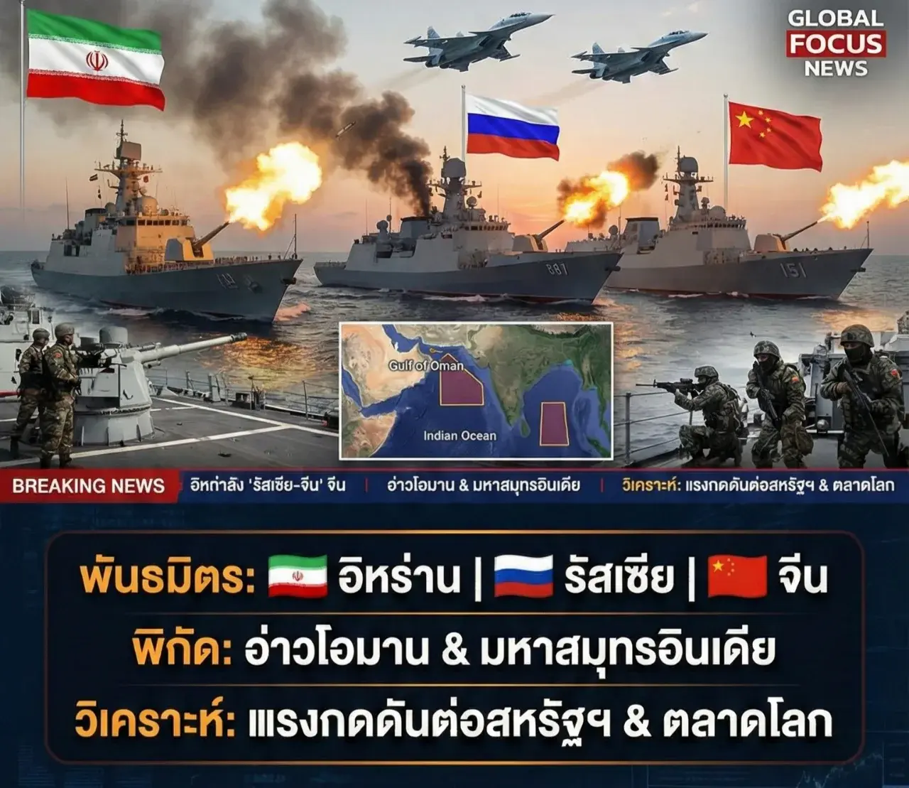 เมื่อคำขู่ของสหรัฐฯ ไร้ผล? อิหร่านผนึกกำลัง "รัสเซีย-จีน" ซ้อมรบกระสุนจริงกลางอ่าวโอมาน สัญญาณนี้บอกอะไรเรา?