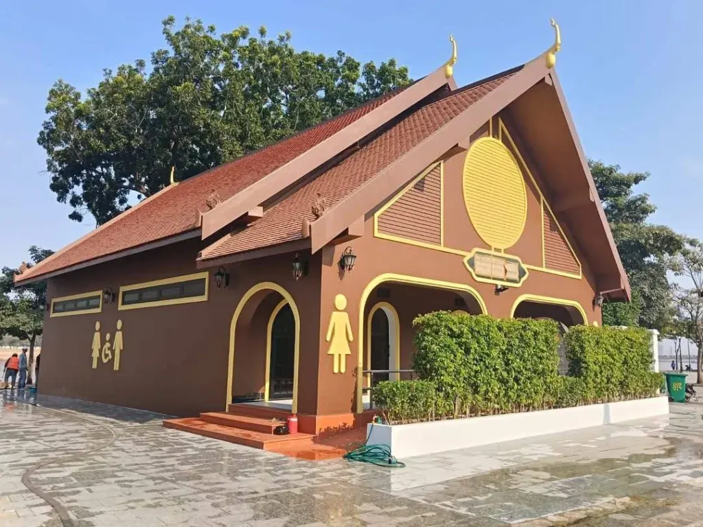 "คุน เซ็ง" ผู้ว่าราชการกรุงพนมเปญ ประเทศกัมพูชา ได้ออกมากล่าวว่า "ตั้งแต่วันนี้เป็นต้นไป [ตามเวลาท้องถิ่น] ทางกรุงพนมเปญจะเปิดให้บริการห้องน้ำสาธารณะสุดหรู โดยไม่เสียค่าใช้จ่าย บริเวณริมแม่น้ำหน้าพระราชวังหลวง" และ "ห้องน้ำสาธารณะแห่งนี้ ได้รับการออกแบบภายนอกใน สไตล์สถาปัตยกรรมเขมรดั้งเดิม และ มีป้ายสัญลักษณ์ที่เห็นได้ชัดเจน..."