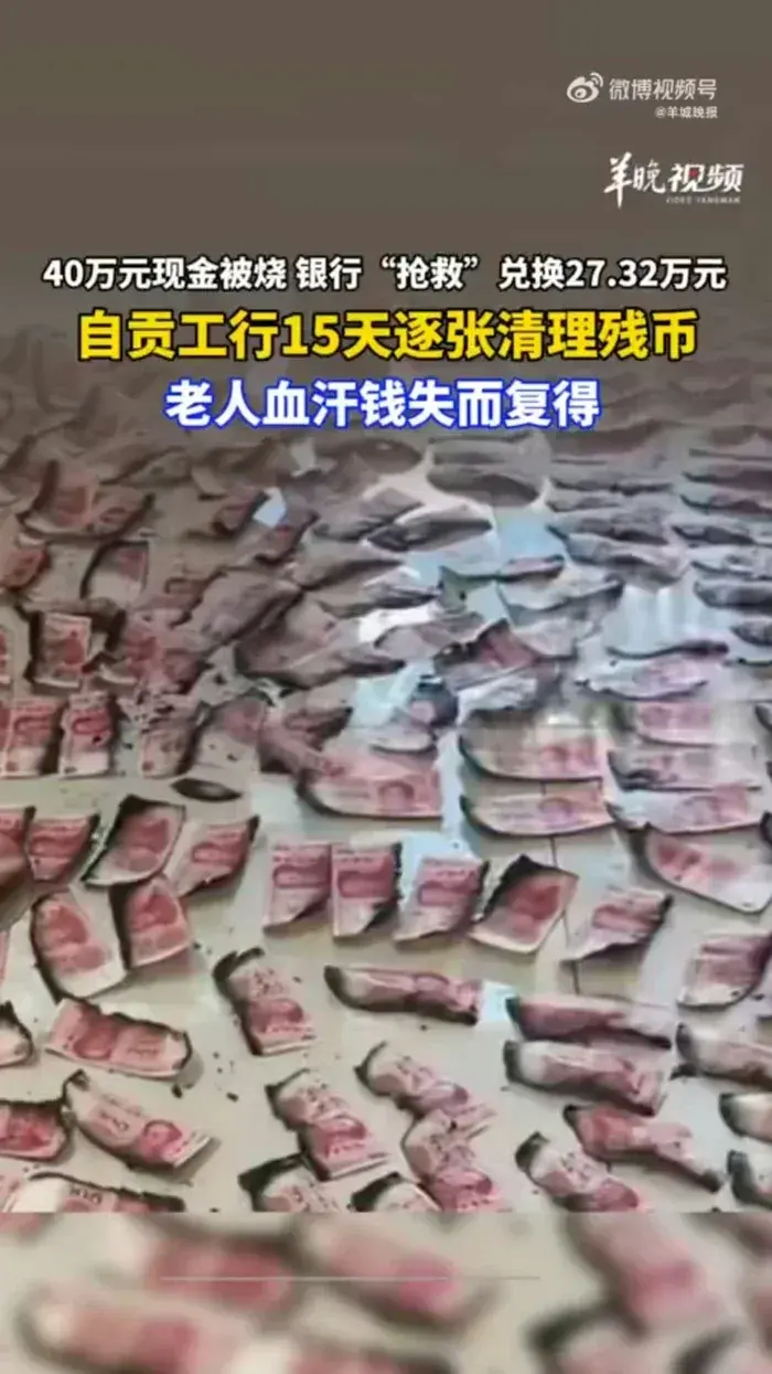 ในช่วงไม่กี่วันที่ผ่านมา สังคมจีนให้ความสนใจอย่างมากกับเรื่องราวที่ว่า "เงินสดถูกไฟไหม้จนกลายเป็นเถ้าถ่าน" ซึ่งเกิดขึ้นที่เมืองจื้อกง มณฑลเสฉวน ประเทศจีนแผ่นดินใหญ่ โดยเหตุเพลิงไหม้ที่เกิดขึ้นอย่างกะทันหัน ซึ่งได้เผาทำลายบ้านของปู่ย่าของหญิงสาวนามสกุล "จ้าว" ส่งผลทำให้เงินสดที่ทั้ง 2 ท่านเก็บหอมรอมริบมานานหลายปี แทบทั้งหมดถูกไฟไหม้เสียหาย โดยประเมินว่ามูลค่าความเสียหายสูงถึงเกือบ 400,000 หยวน (ประมาณ 1.8 ล้านบาท)