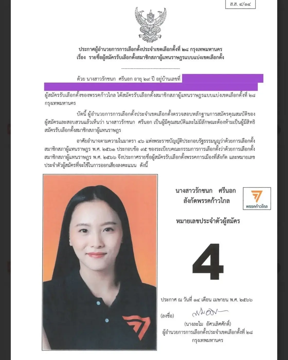 และที่พีคยิ่งกว่าคือ หน้าที่แสดงผลขึ้นมา ดันเป็นข้อมูลเอกสารแนะนำตัวของ "คุณไอซ์ รักชนก ศรีนอก" ซึ่งในตอนนั้น (ปี 66) สังกัด "พรรคก้าวไกล" (ตามภาพหลักฐานที่ว่อนเน็ตกันอยู่ในตอนนี้)