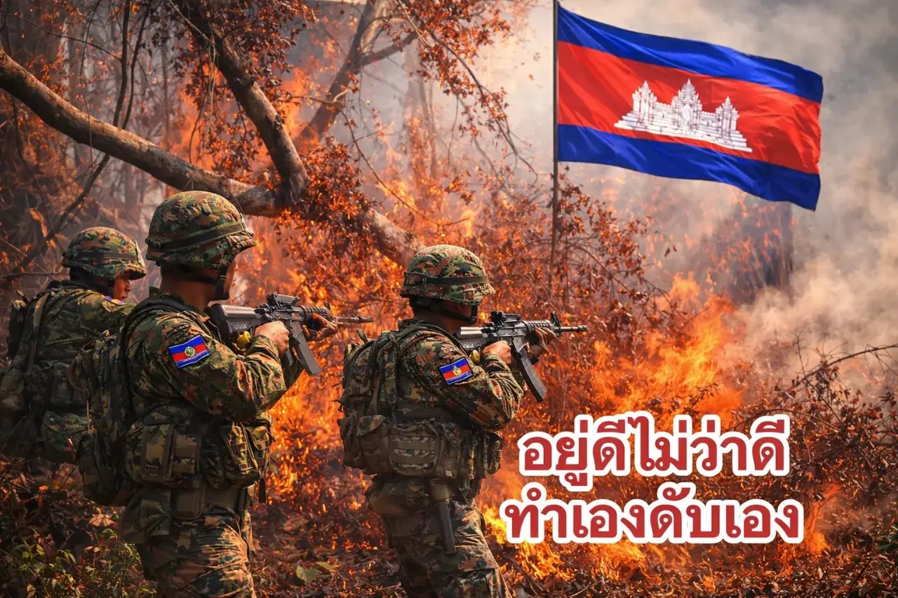 ทหารเขมรพยายามจุดไฟเผาป่าแถวชายแดนกะจะสร้างความฝุ่น PM 2.5 ให้ลอยมาฝั่งไทยแต่กรรมติดจรวดเพราะลมเจ้ากรรมดันพัดหวนไปฝังกัมพูชาแทน