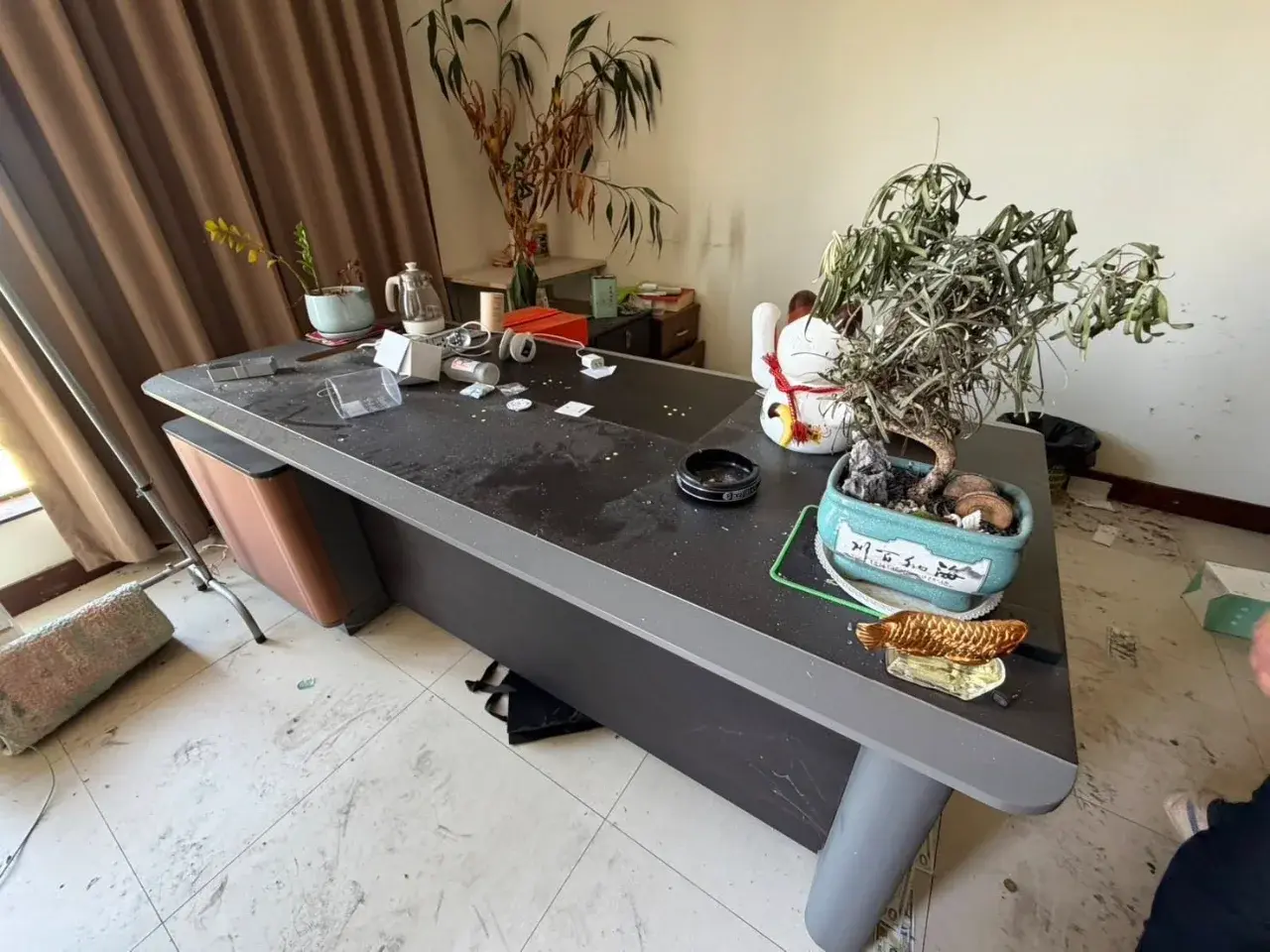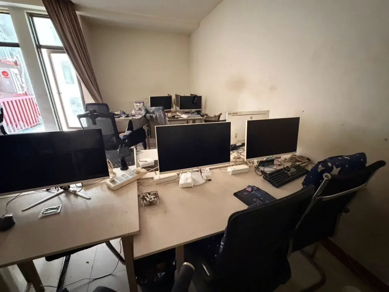 การตรวจค้นภายในอาคารพบหลักฐานการฉ้อโกงจำนวนมาก ไม่ว่าจะเป็นฉากจำลองสถานีตำรวจและธนาคารของหลายประเทศ เพื่อสร้างความน่าเชื่อถือในการหลอกลวงผู้เสียหาย นอกจากนี้ยังพบเอกสารรายชื่อเหยื่อ เครื่องแบบตำรวจ เครื่องใช้ไฟฟ้า และทรัพย์สินส่วนตัวกระจัดกระจายอยู่ทั่วพื้นที่