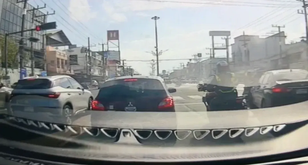 กล้องชัด! ตำรวจจราจรไล่ระทึกกระบะผัวเมียไม่ติดแผ่นป้ายฝ่าสัญญาณ