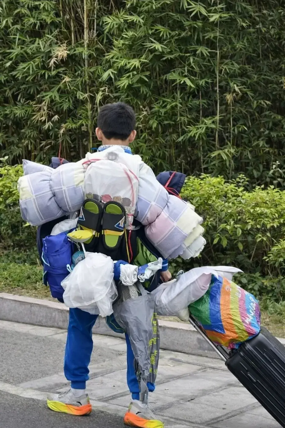 ในช่วงไม่กี่วันที่ผ่านมา ภาพถ่ายภาพหนึ่งที่ถ่ายจากด้านหลัง ของนักเรียนชายระดับมัธยมต้น ได้กลายเป็นกระแสไวรัลอย่างรวดเร็ว บนสื่อสังคมออนไลน์ของจีน ซึ่งในภาพจะเห็นว่า "เด็กชายสวมเครื่องแบบนักเรียน รูปร่างเล็กกะทัดรัด มือหนึ่งลากกระเป๋าเดินทาง บนหลังและ 2 ข้างลำตัวมีสัมภาระหลากหลายขนาด ถูกมัดจัดไว้อย่างเป็นระเบียบ ขณะกำลังยืนรอรถไฟฟ้าใต้ดิน" ซึ่งทักษะการ "แพ็คของขั้นเทพ" นี้เอง ที่ทำให้ชาวเน็ตจำนวนมาก โดยเฉพาะผู้ปกครอง ต่างชื่นชมว่า "ของมากขนาดนั้นแต่มัดติดตัวได้เป็นระเบียบ แม้แต่ผู้ใหญ่ก็อาจทำไม่ได้!!"