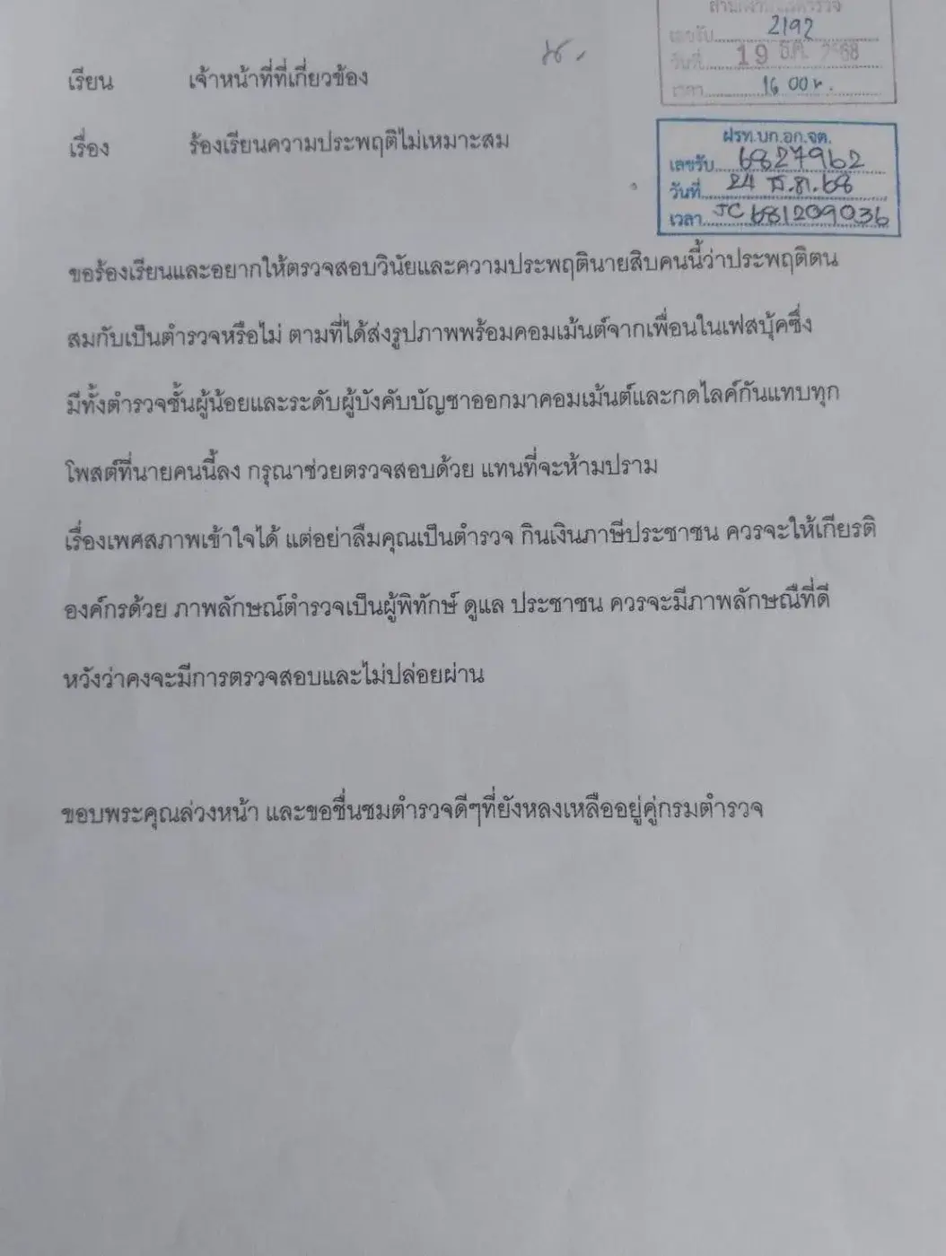 น้องตำรวจเขา "ผิด" อะไร?ในมุมมองของ "ผู้ร้องเรียน" (ผ่านบัตรสนเท่ห์)