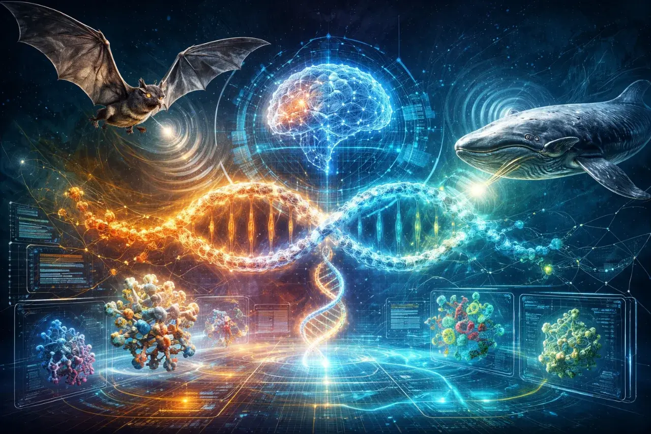 ลองนึกภาพแบบนี้ก่อน…สิ่งมีชีวิตบนโลกมันหลากหลายมาก บางชนิดดูไม่น่าจะเกี่ยวข้องกันเลย แต่ดันมีความสามารถคล้ายกันเป๊ะ อย่าง ค้างคาว กับ วาฬมีฟัน ตัวหนึ่งบินบนฟ้า อีกตัวว่ายอยู่ในทะเล คนละโลกชัดๆ แต่ทั้งคู่กลับใช้ความสามารถเดียวกันคือ การระบุตำแหน่งด้วยเสียงสะท้อน (echolocation) ฟังดูเหมือนนัดกันไว้ ทั้งที่ความจริงไม่ได้เป็นญาติกันใกล้ชิดเลยด้วยซ้ำ