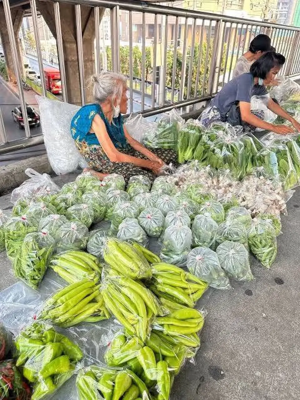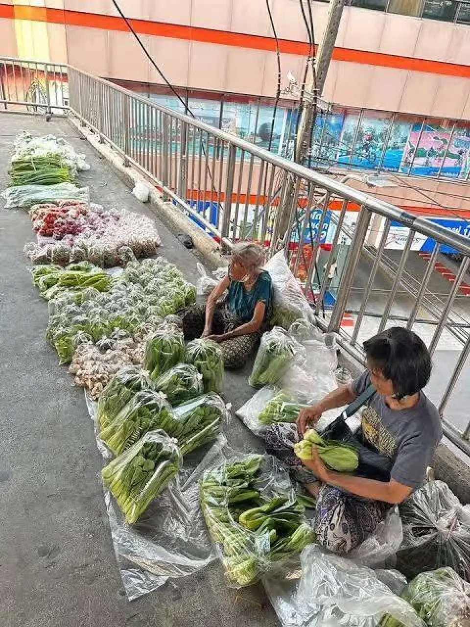 ล่าสุด ผู้ใช้เฟซบุ๊ก Thanasak Thepsathian ได้โพสต์ภาพคุณยายขายผักบนสะพานลอยหน้าตลาด กกท. ซอยลาดพร้าว 122 โดยมีประชาชนมาอุดหนุนอย่างต่อเนื่อง ผักสดใหม่ราคาเพียงถุงละ 20 บาท