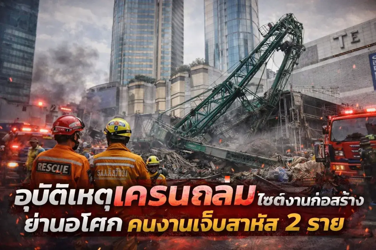 อุบัติเหตุเครนถล่มไซต์งานก่อสร้างย่านอโศก คนงานบาดเจ็บสาหัส 2 ราย
