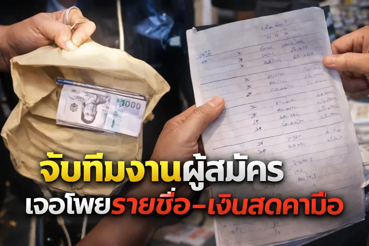 เดือดก่อนปิดหีบ! ชุดเคลื่อนที่เร็วบุกจับทีมงานผู้สมัคร เจอโพยรายชื่อ–เงินสดคามือ กลางเขาขลุง ราชบุรี