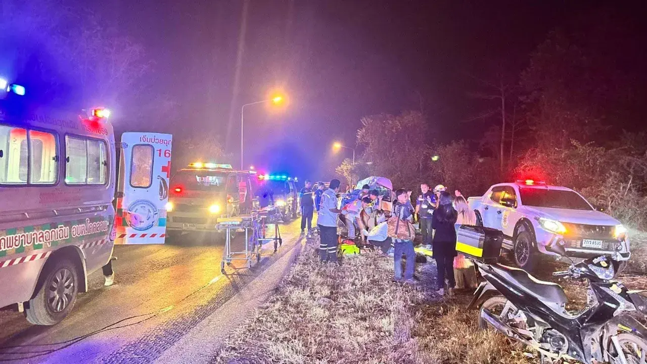 ระทึกกลางดึก! รถบรรทุก 22 ล้อชนรถตู้ช่องเขาตะโก เจ็บระนาว 11 ราย เร่งตัดถ่างช่วยชีวิต